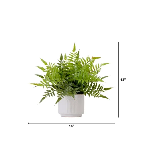 Add a touch of lush, natural charm to your home or office with our 13” Artificial Boston Fern Plant, housed in a stylish decorative planter. This realistic faux plant brings jungle vibes to any room, transforming your space into a green oasis without the need for maintenance.
