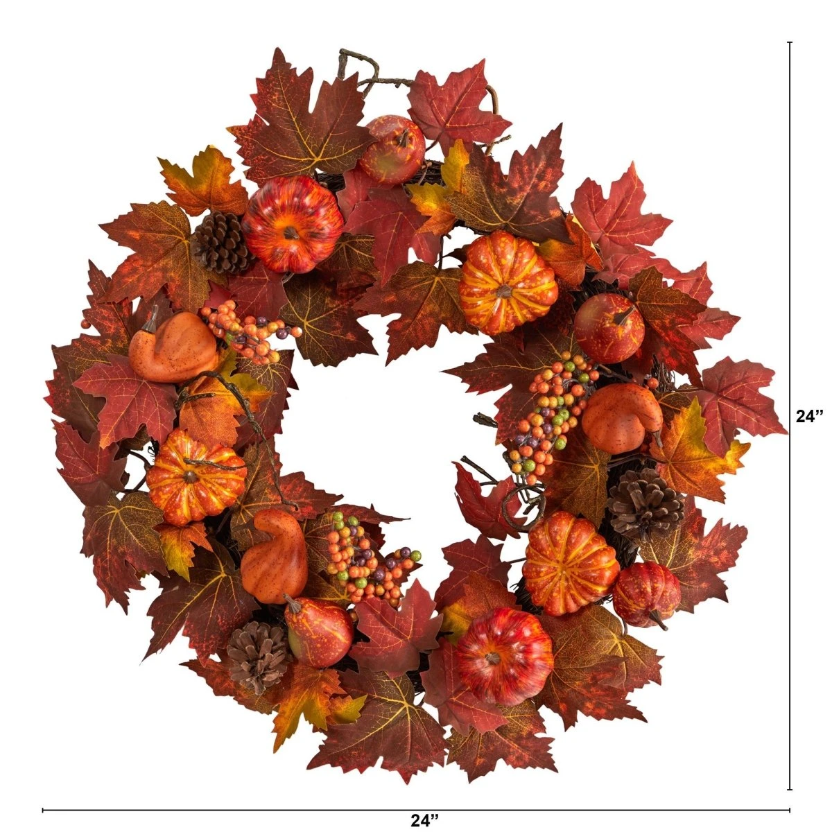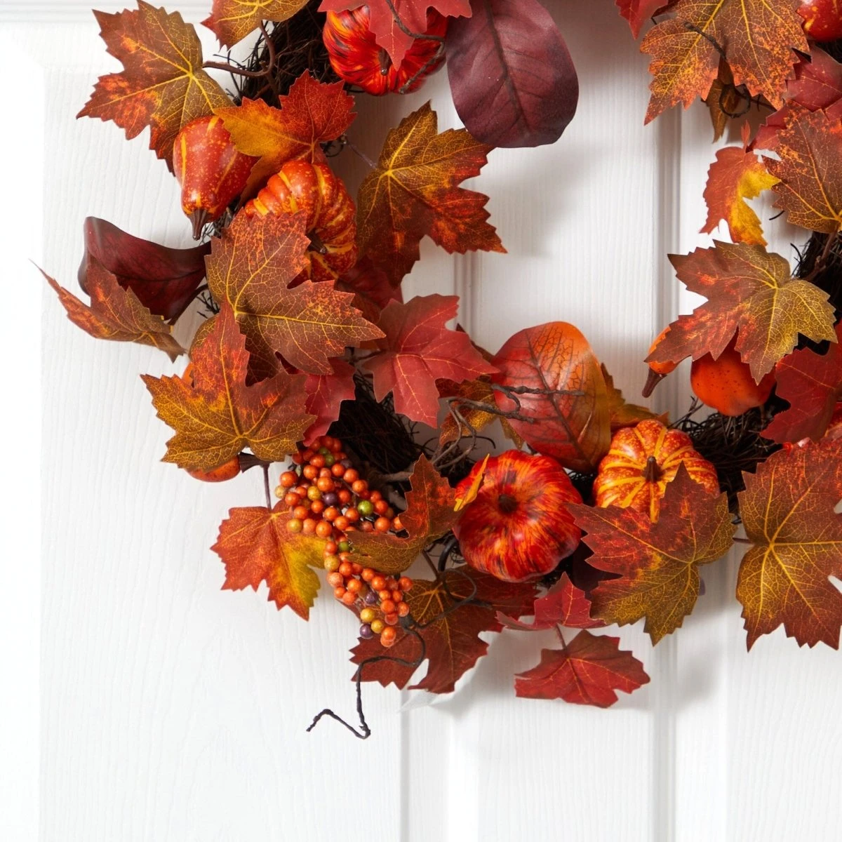 Celebrate Fall with the 24″ Autumn Maple Leaves Wreath