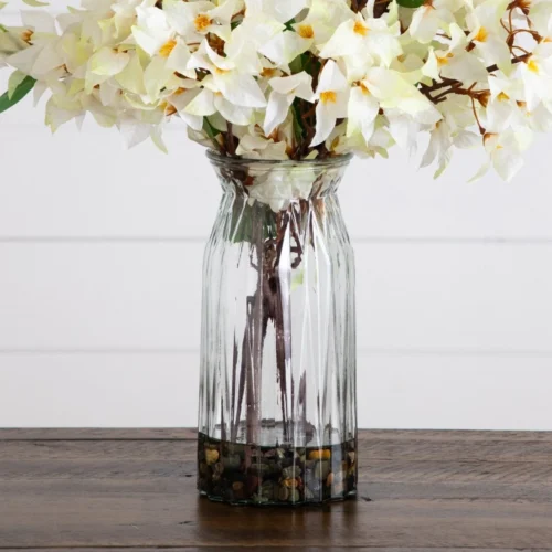 Brighten your space with the timeless beauty of this 31” Artificial Pink Bougainvillea Arrangement in Vase. Featuring vibrant pink blooms and lush green foliage, this lifelike arrangement is carefully crafted to mimic the natural elegance of bougainvillea. Displayed in a sleek, modern vase, it’s a ready-to-show centerpiece perfect for tables, desks, or mantels. Whether you’re adding a pop of color to your home, office, or special event, this maintenance-free arrangement delivers lasting charm and sophistication.