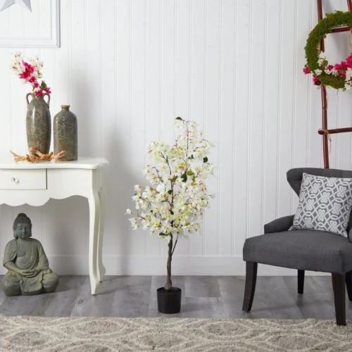 - Design: Vibrant pink blooms and a realistic trunk for a natural look
