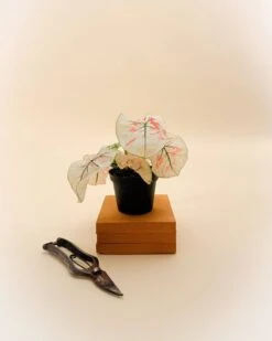 Caladium Bicolor ‘Snow’ is a stunning tropical plant admired for its heart-shaped white leaves delicately brushed with soft green veining. Perfect for adding brightness to shaded areas, this variety brings a cool, elegant feel to indoor displays and outdoor containers alike.