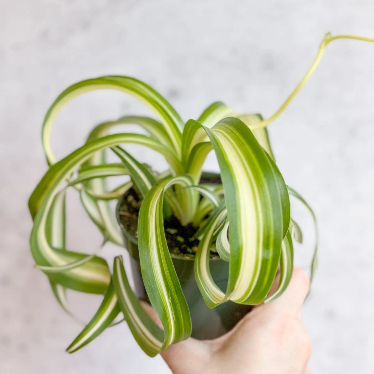 The Bonnie Spider Plant (Chlorophytum comosum ‘Bonnie’) offers a twist on the classic spider plant with its eye-catching, curly foliage. This variety is known for its unique, wavy leaves that add both texture and charm to any indoor space. Like other spider plants, Bonnie is an excellent air purifier and easy-care option, making it perfect for both beginner plant parents and seasoned collectors.