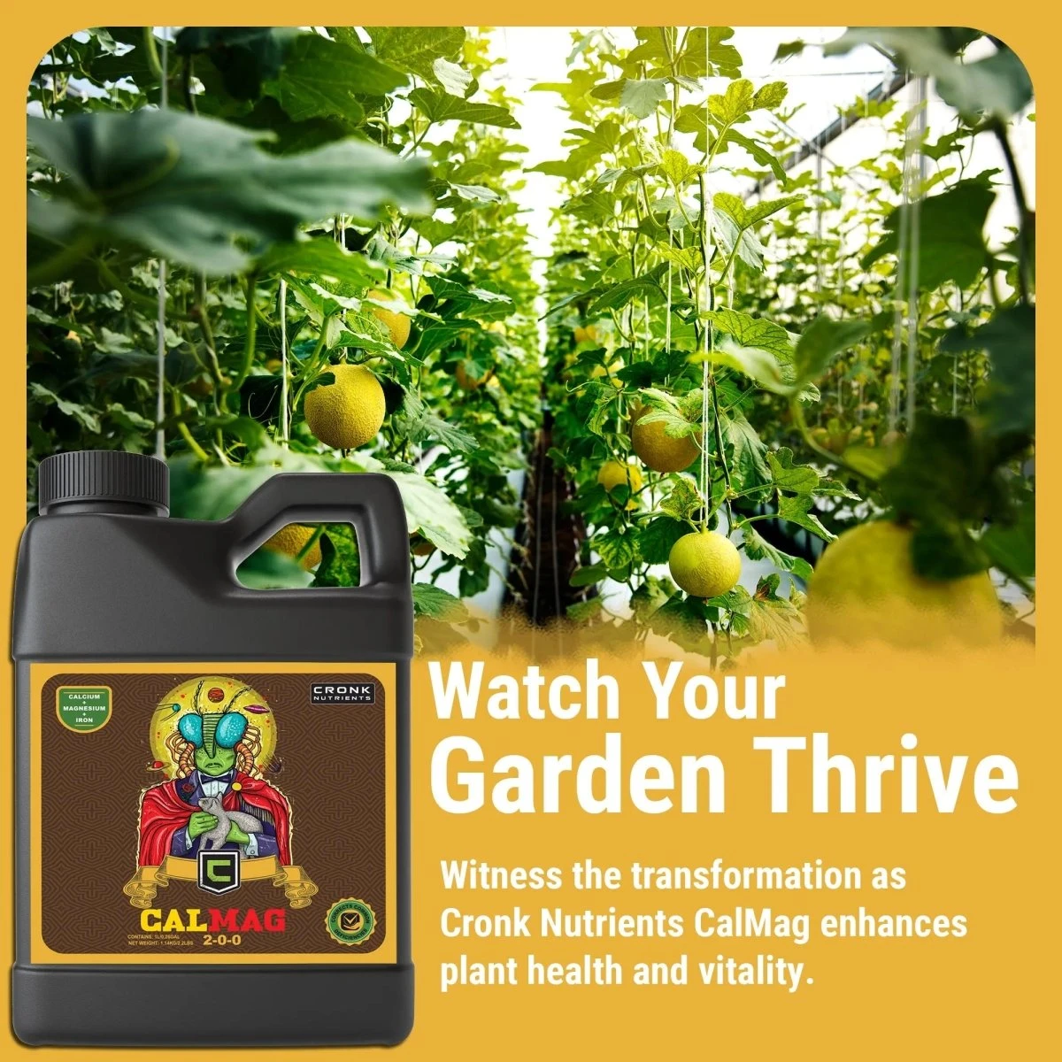 Ensure robust growth and prevent common nutrient deficiencies with Cronk Nutrients’ CalMag 2-0-0. This concentrated formula combines calcium, magnesium, iron, and a touch of nitrogen to support: