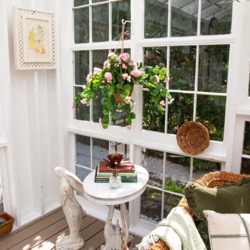 - Flower Type: Geranium (artificial/silk)