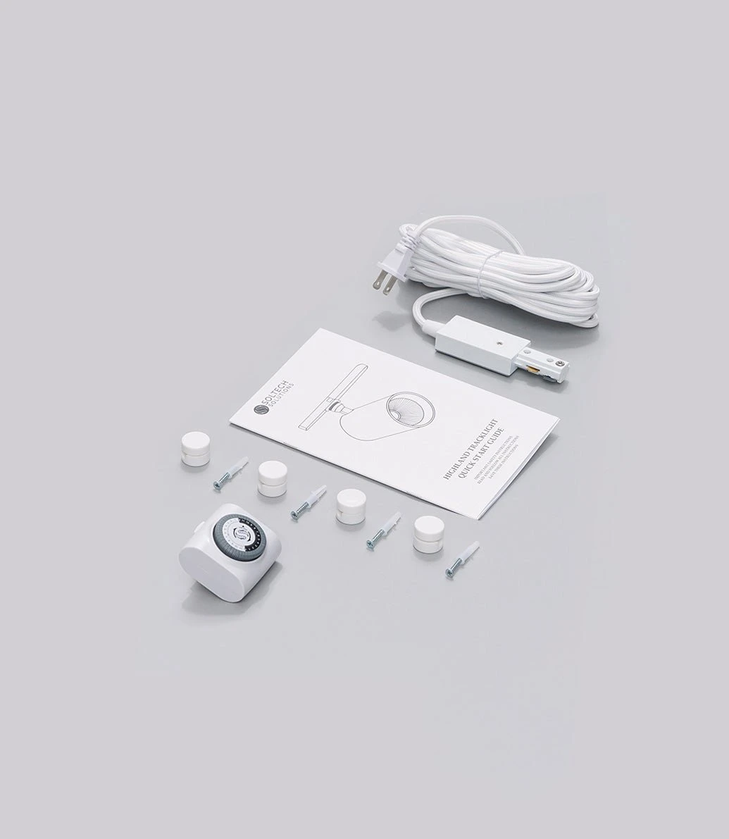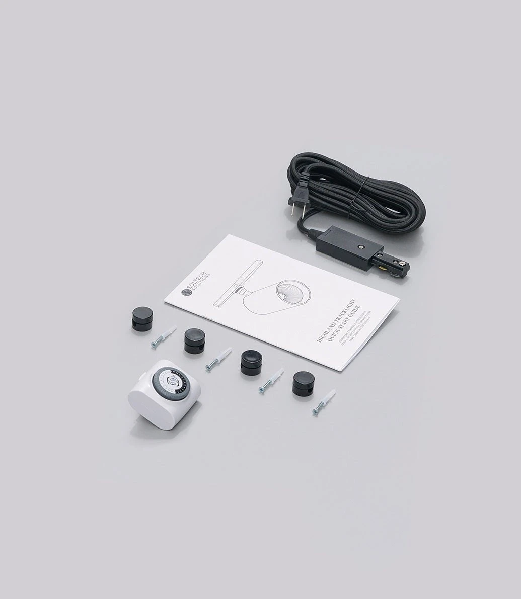 The Highland™ Power Source is an essential component for the Highland Light System, offering two convenient ways to power your track rail. You can either hardwire the system directly into the ceiling using the ceiling canopy, eliminating any visible cords for a clean and sleek installation, or you can use the cord and plug option to attach the track rail and plug it directly into a wall outlet. This versatile power source includes an analog wall timer, giving you complete control over your lighting schedule for added convenience and energy savings.