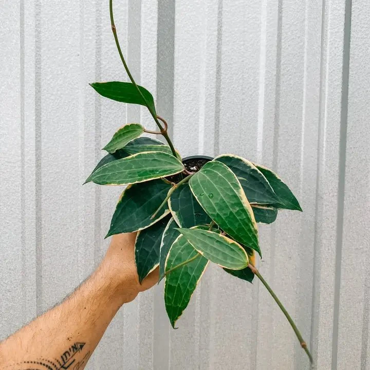 The Hoya Macrophylla ‘Variegata’ is a breathtaking variety, prized for its large, waxy leaves edged with striking cream-to-yellow variegation and subtle hints of pink. As it matures in ideal conditions, this slow-growing climber or trailing plant produces fragrant, star-shaped white flowers with a pink blush, making it a amust-have for any Hoya enthusiast.