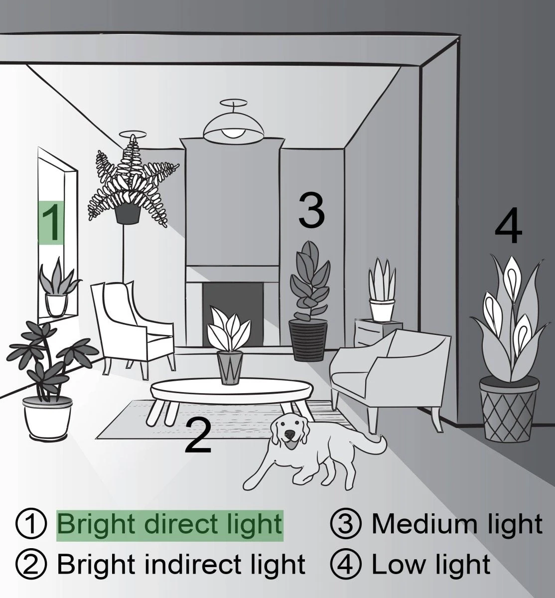 - Temperature: 65–80 °F (18–27 °C); protect from frost