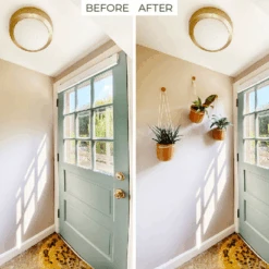 - Pilea peperomioides – round, bright leaves pop against mustard