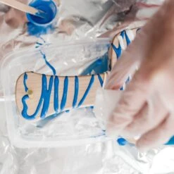 This craft kit comes with epoxy resin, paint, tape, and all the necessary materials to create beautiful marbled designs. Crafters will need scissors, a cup, and tin foil.
