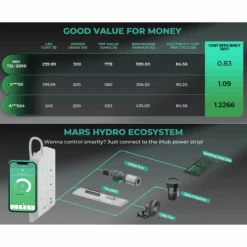 - Consumes only 300W while delivering the equivalent light of a 400W HPS, reducing energy costs by 25%.