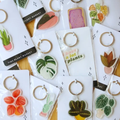 This plant themed keychain is made of clear acrylic and comes with a key ring. Remember to remove the protective film once your keychain arrives! Great stocking stuffer for the plant lovers in your life!