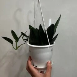 The Scindapsus Treubii ‘Dark Form’ is a captivating houseplant that boasts deep, dark green foliage with a velvety texture. Known for its thick, glossy leaves, this plant adds a touch of sophistication to any indoor setting. The ‘Dark Form’ variety is particularly prized for its rich, almost black leaf color, providing a stunning contrast to lighter-colored plants. Whether displayed in hanging baskets, on shelves, or as a climbing plant on a trellis, the Scindapsus Treubii ‘Dark Form’ enhances your home decor with its depth and visual appeal.