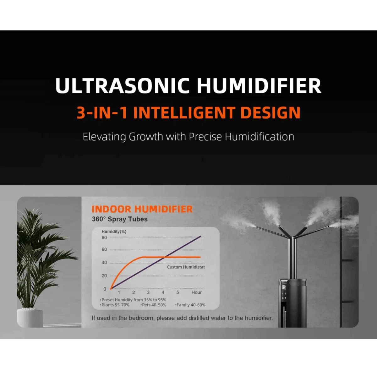 - Precise Humidity Control: An independent sensor ensures consistent and accurate humidity levels for optimal plant growth. (Tip: Place the sensor away from the mist outlet for accurate readings.)