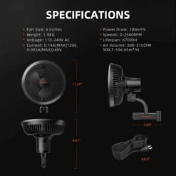 - 6″ Clip Fan: Simulates natural breezes, reducing pests and mold.