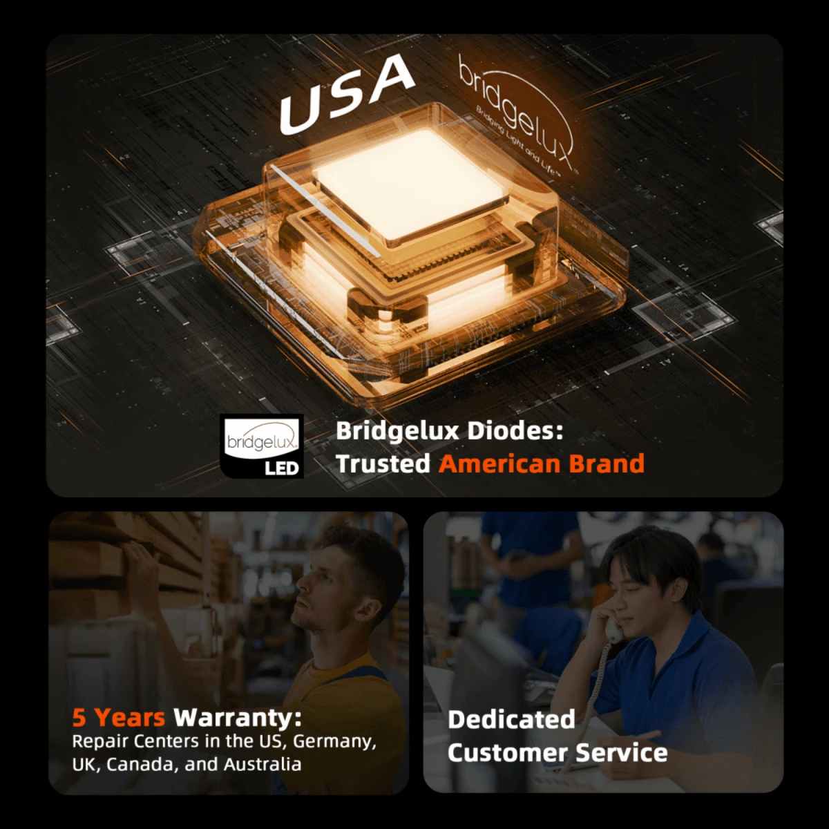 - Premium Bridgelux Diodes: Trusted American brand LEDs for high efficiency, long lifespan, and reliable performance.