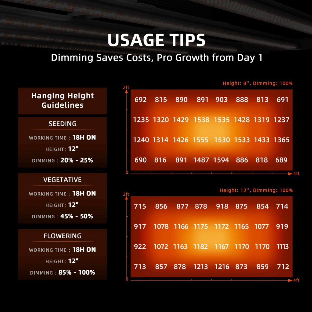 - Full Spectrum Lighting: Includes 660-665nm, 2800-3000K, and 4800-5000K wavelengths for all growth stages.
