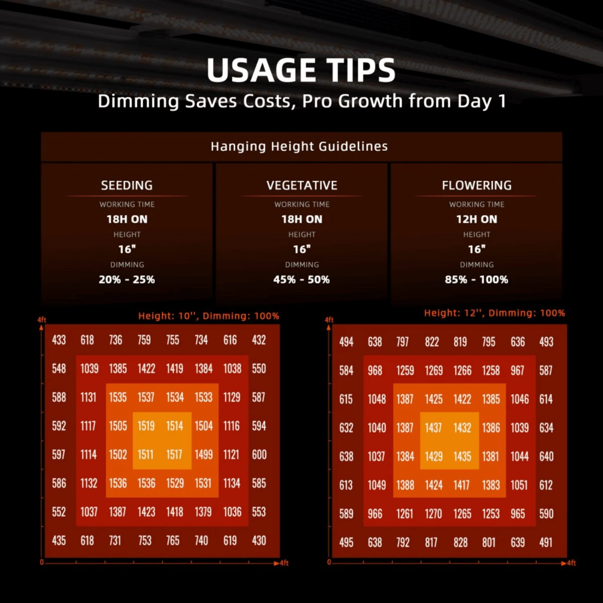 The bar-style configuration optimizes heat dissipation and allows for easy integration of supplemental lighting. This design ensures even light coverage across a 4’ x 4’ growing area.