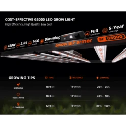 Maximize your growing potential with the Spider Farmer G5000, a cutting-edge LED grow light designed to deliver unmatched performance and incredible value. Engineered for both novice and expert growers, this light offers a high-density LED design, superior efficiency, and exceptional yields—all at an affordable price point.