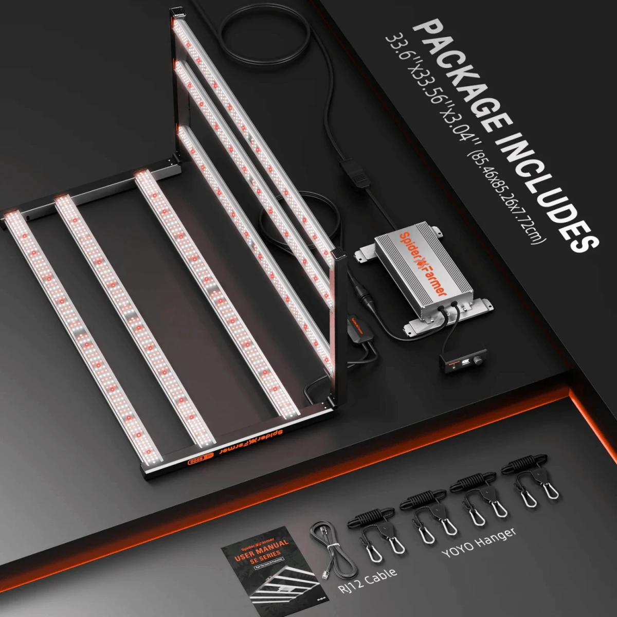 The Spider Farmer SE5000 combines energy efficiency, professional-grade features, and innovative design to deliver superior plant growth and exceptional yields. Its daisy chain functionality and full spectrum lighting make it ideal for hydroponics, vertical farming, and home growers.