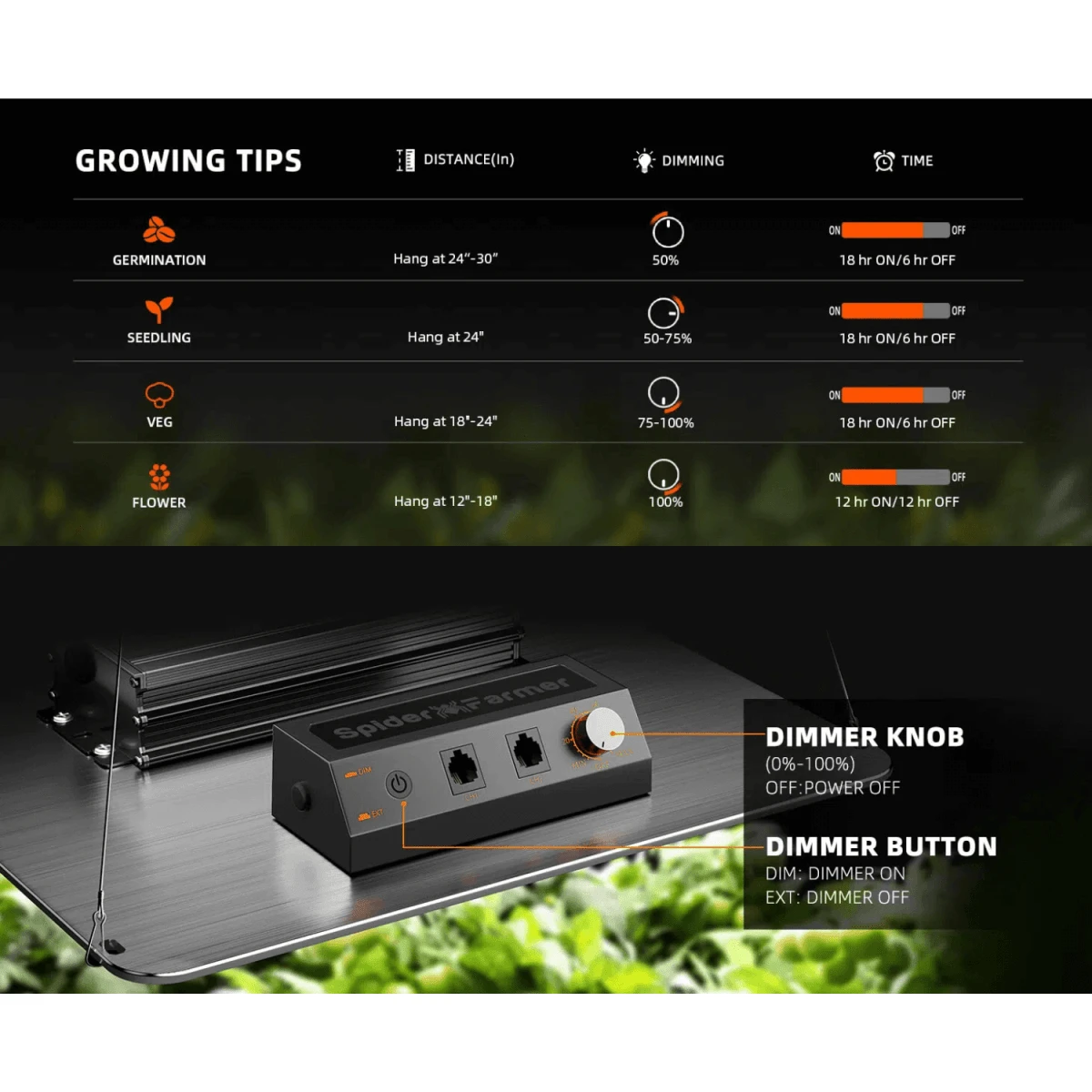 The Spider Farmer SF2000 combines advanced LED technology, high efficiency, and a durable design to support healthy plant growth and maximize yields, whether for beginners or professional growers.