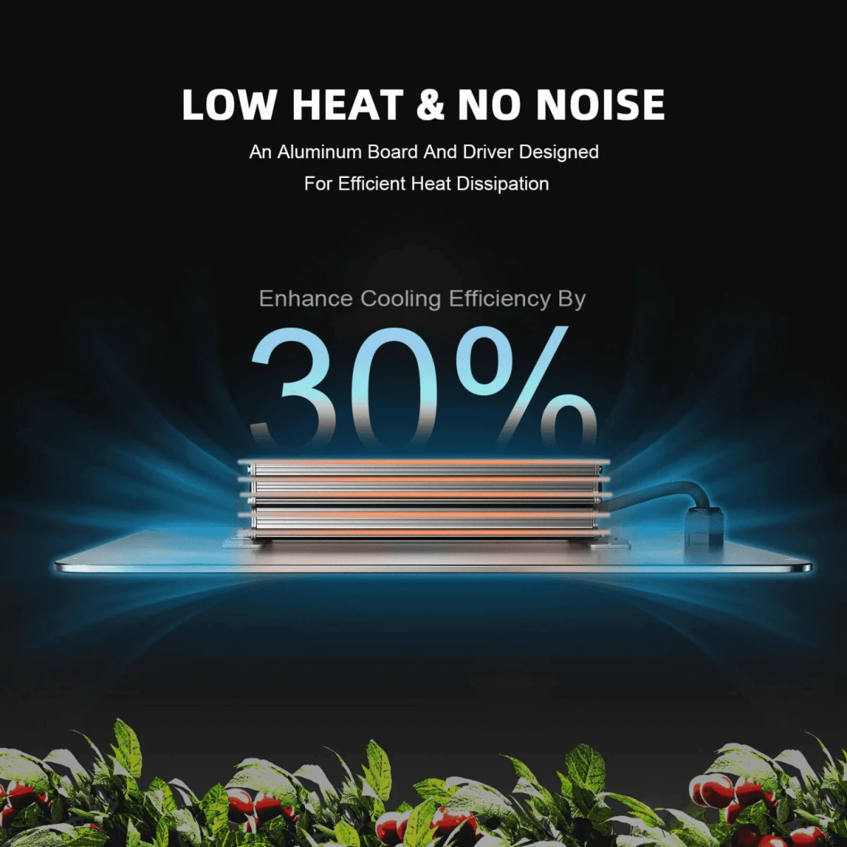 The upgraded diode layout ensures even light distribution, reducing hotspots. The dimming knob allows precise control of light intensity, and multi-light daisy chaining makes it ideal for large or commercial setups.