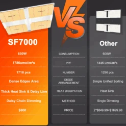 Designed for professional growers and hobbyists alike, the SF7000 offers a 5×5 ft core coverage area, perfect for indoor grow tents or larger setups.