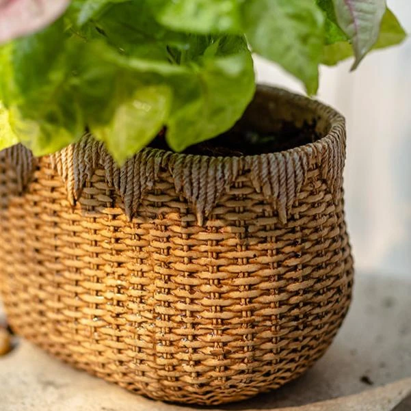This planter gives the timeless look of a straw basket but with the durability of solid cement. Perfect for those who love natural textures without compromising strength, it’s an ideal choice for housing your favorite plants.