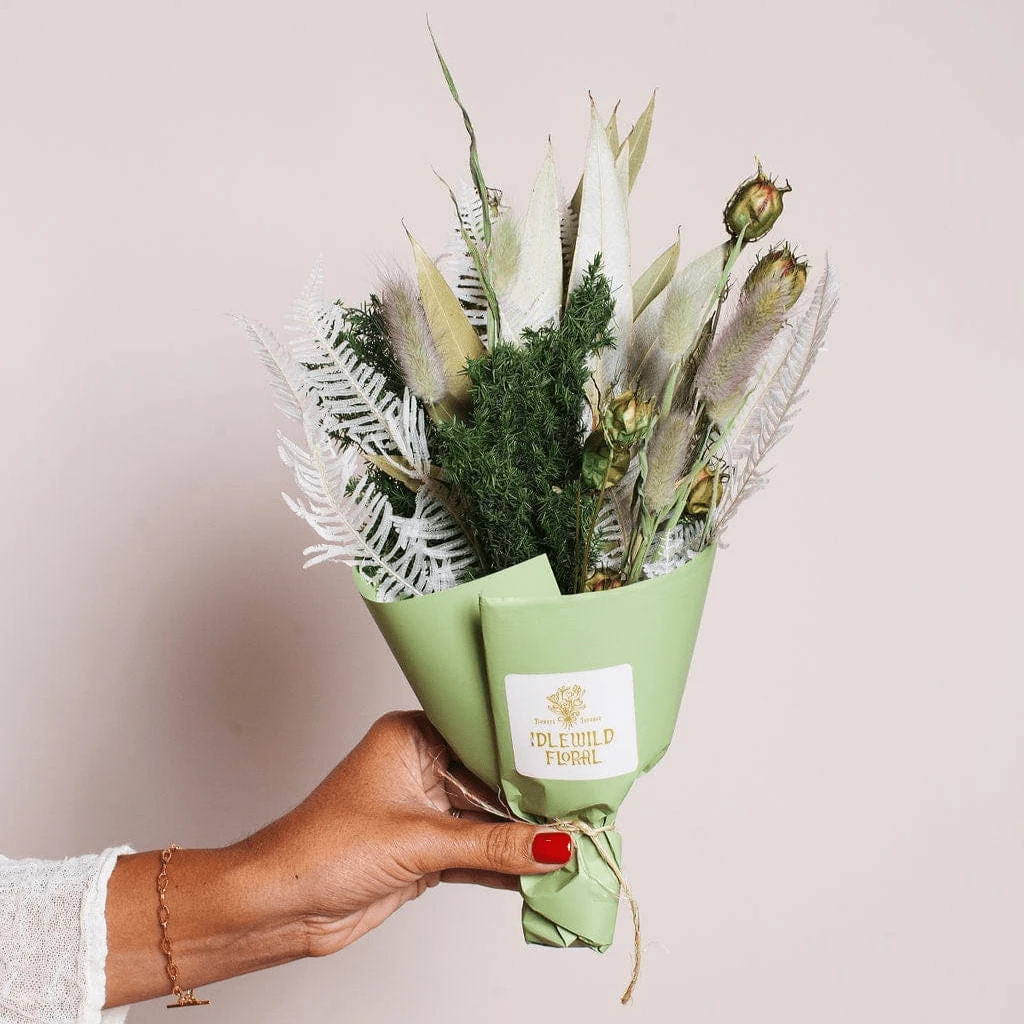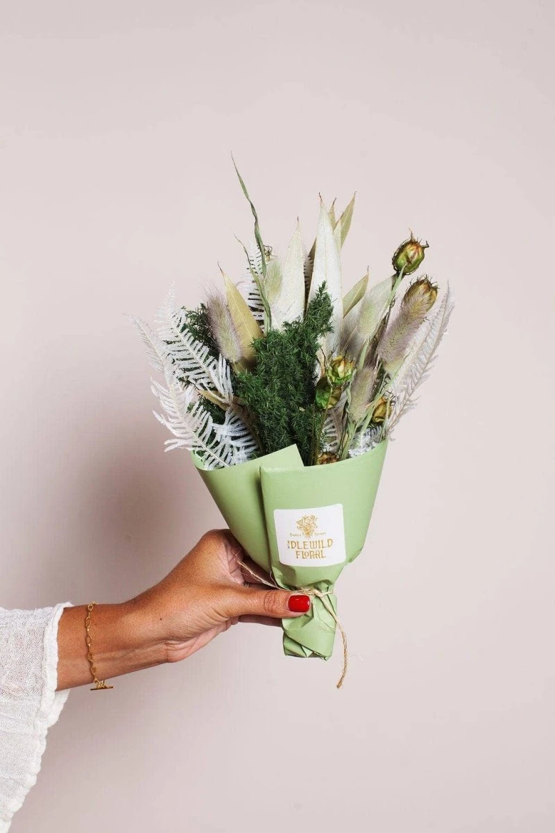 The Mini Woodland Bouquet is a beautifully preserved floral arrangement inspired by the tranquil hues of the forest. Handcrafted in our California studio, this long-lasting dried bouquet captures earthy tones and delicate textures, making it a charming addition to your home decor, a unique gift, or a rustic wedding accent.