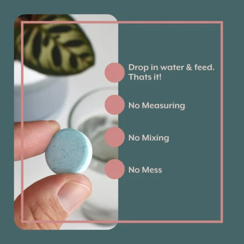 Feed your plants our gently formulated Plant Food that contains all the essential nutrients your plants need along with trace micronutrients required for a well-rounded, healthy plant diet. 4-3-6 NPK! Give your soil the ProBiotics to bring it to life so your plants can thrive naturally.  This combination of Plant Food and ProBiotics promotes lush, healthy houseplant growth. The bubbling action of our tablets make them an easy, fun and climate-friendly way to feed your plants.Â