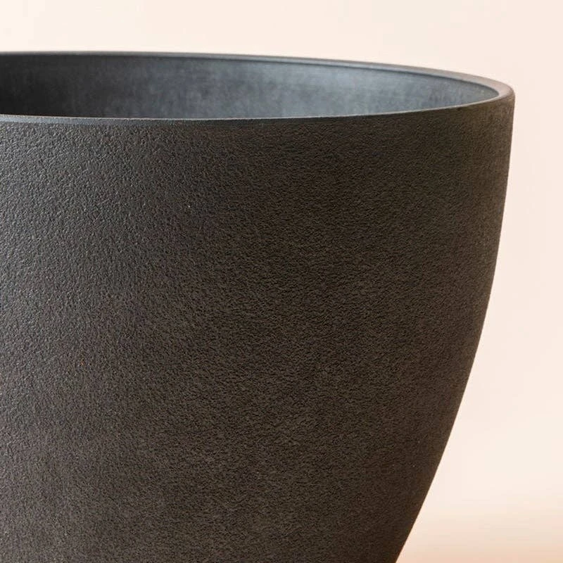Tuileries Planter Pot. This attractive black planter pot is an ideal way to enjoy your favorite plants. They are sure to compliment any home decor. You will love them adorning outdoor areas such as your patio, deck, or garden or indoors in your kitchen, living room or bathroom. *Built to withstand intense sun and harsh winter temperatures, free from fade, frost, crack and peel damage so you can use it indoors and outdoors freely. A saucer is needed for indoor use (NOT INCLUDED). ** Drainage holes included.