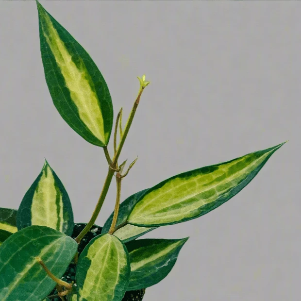To promote the best variegation and future flowering, give your Hoya a support like a trellis or moss pole, and avoid repotting too often—Hoyas bloom best when slightly root-bound!